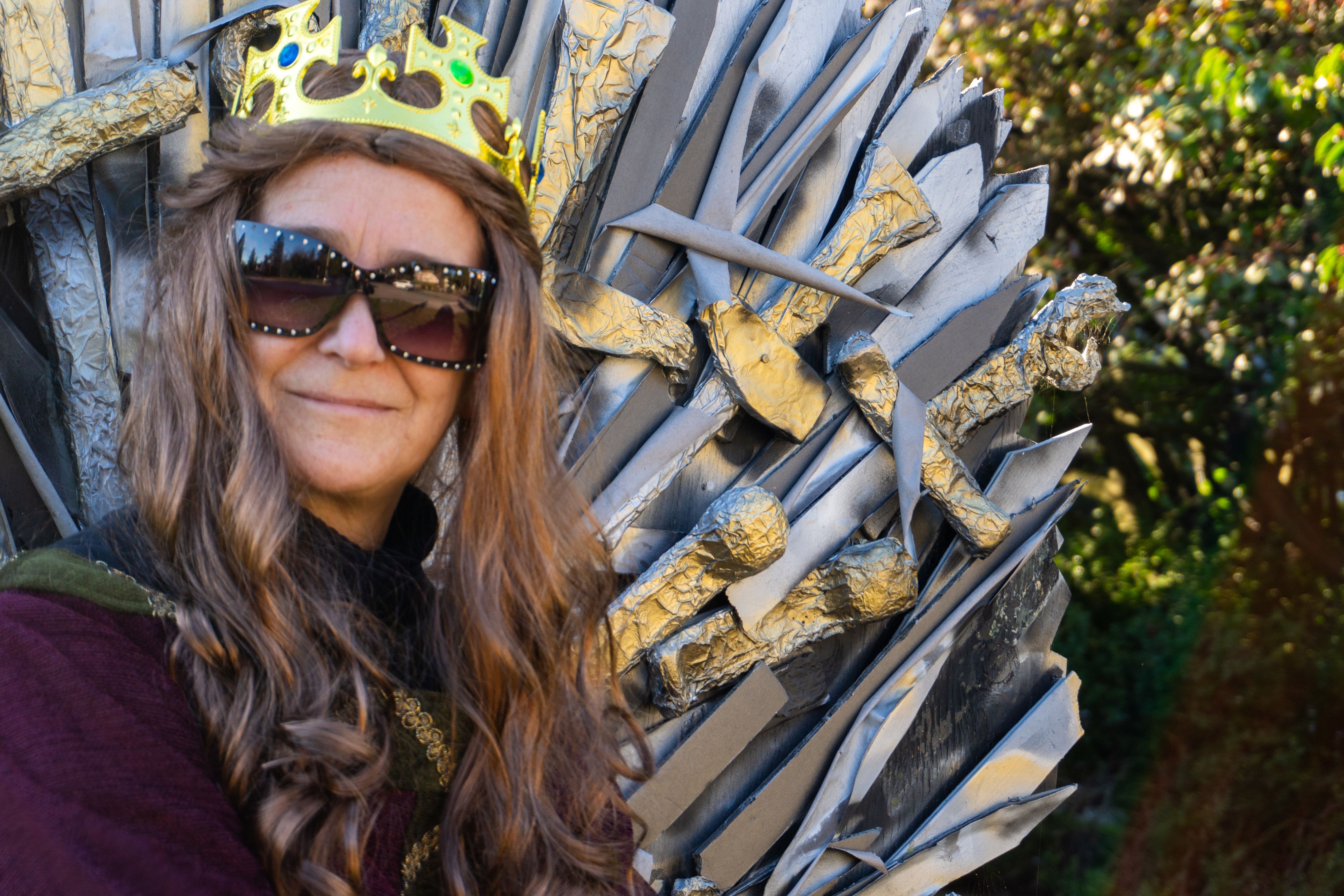 Bruinn also decorated her yard to support her daily mission of entertaining the community. She first put up a blackboard where she writes silly thoughts for the week. Then she started creating props: the Tardis from Doctor Who, the Iron Throne from Game of Thrones, and a Hobbit house.