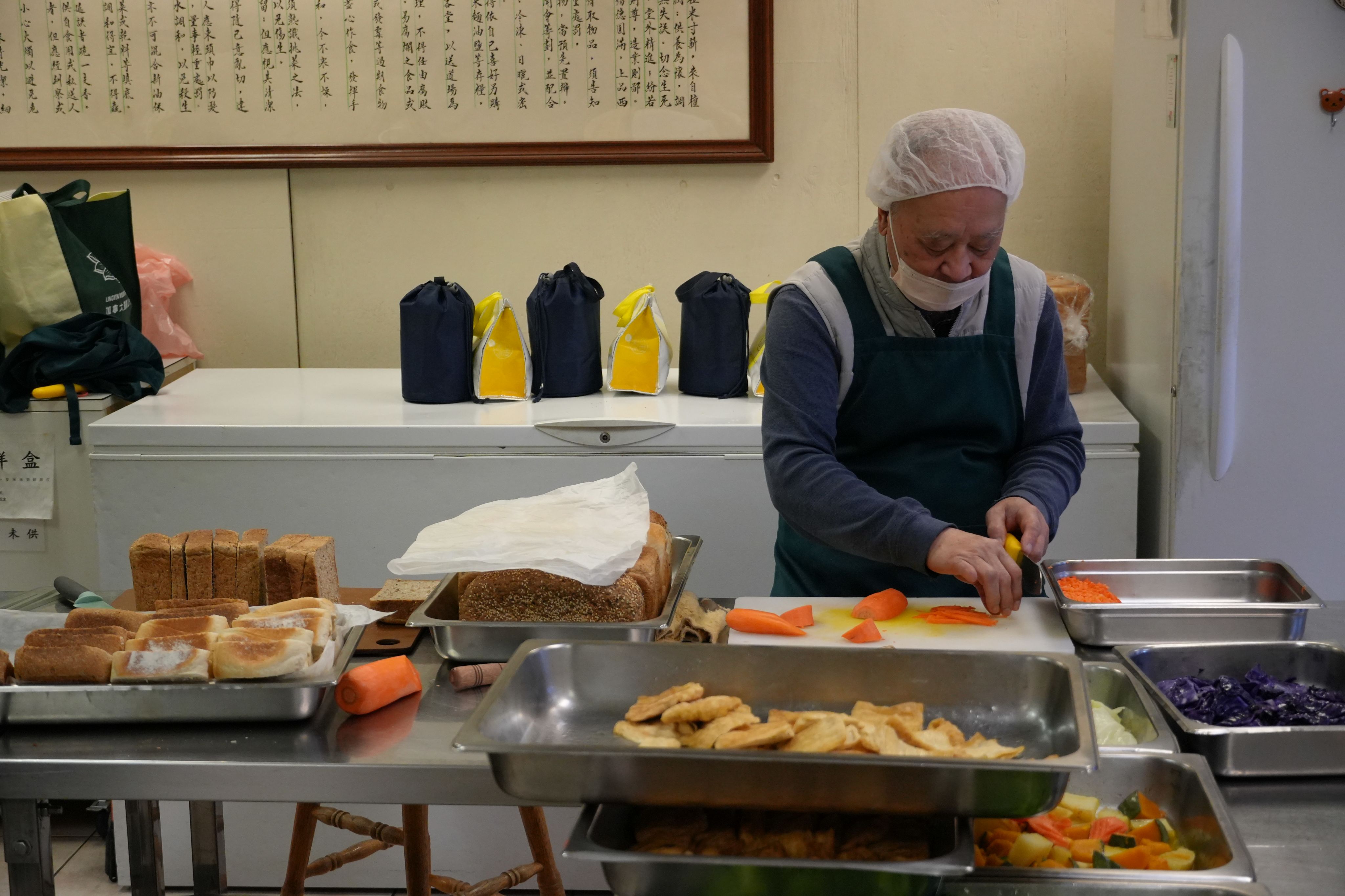 The free vegetarian cuisine are prepared by volunteers from the temple, who are busy in the kitchen before lunch time. An array of vegetarian delicacies awaits, showcasing a diverse selection not limited to various vegetables but also encompassing freshly baked breads and delectable desserts.