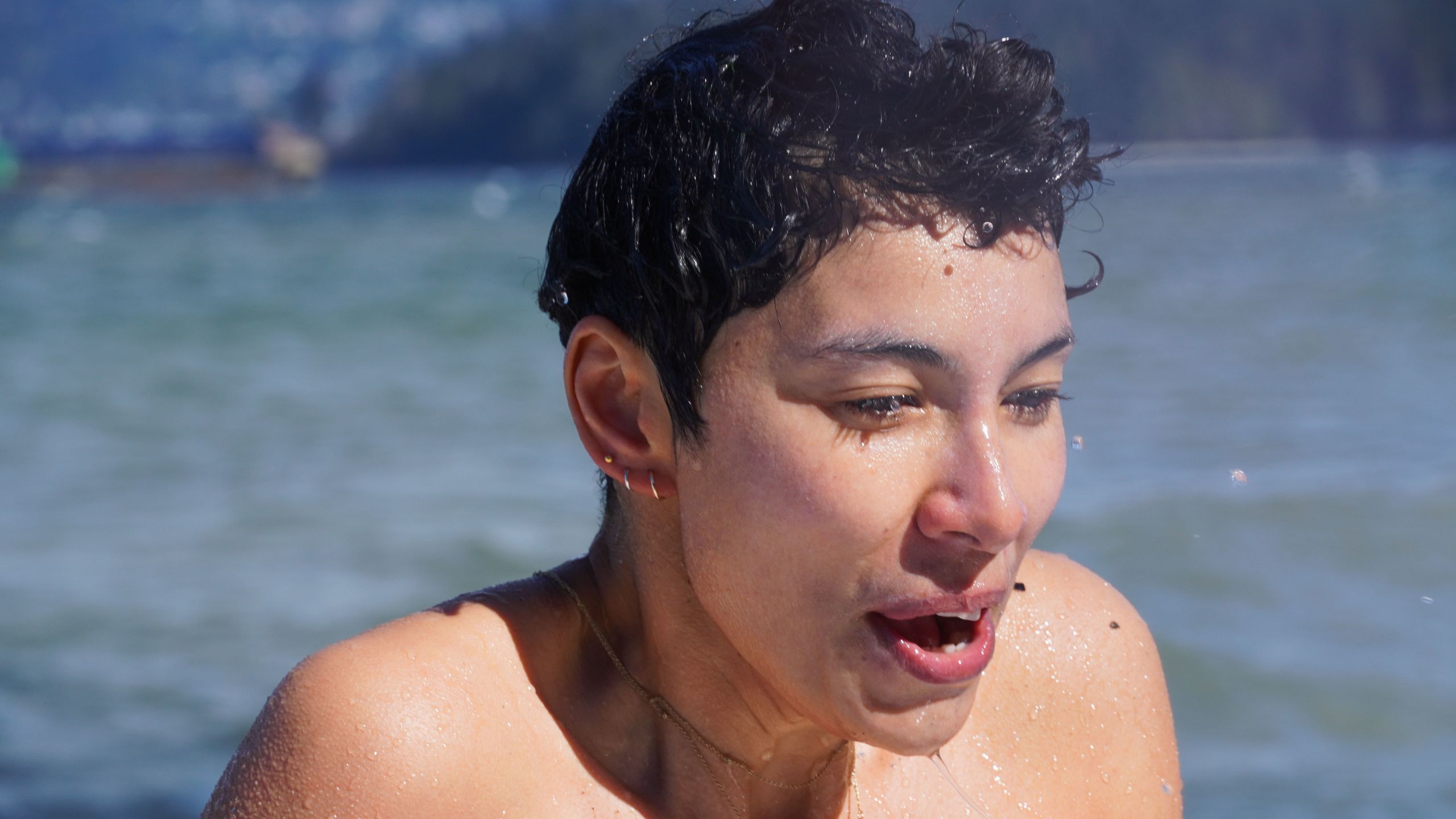 I live with Complex Post Traumatic Stress Disorder, so trauma is not unfamiliar to my body. When I’m in a trauma response, I tend to freeze, and that was the feeling I had leading up to my first dip. My mind was like, Why? What are you doing to yourself? It was so painful. I felt like my body was being stabbed all over with needles. I remember looking over at Claire and she was so calm and serene with her arms up to the sky. I was like, "What the actual fuck is happening?"