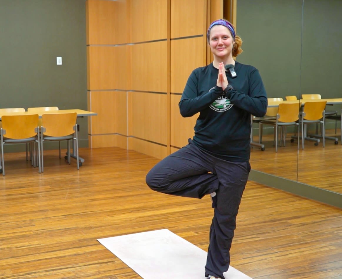 Every Tuesday at 7:30 pm, Walter Gage Residence of the University of British Columbia sees students come together to stretch, breathe, and relax under the guidance of Amanda, the yoga instructor.