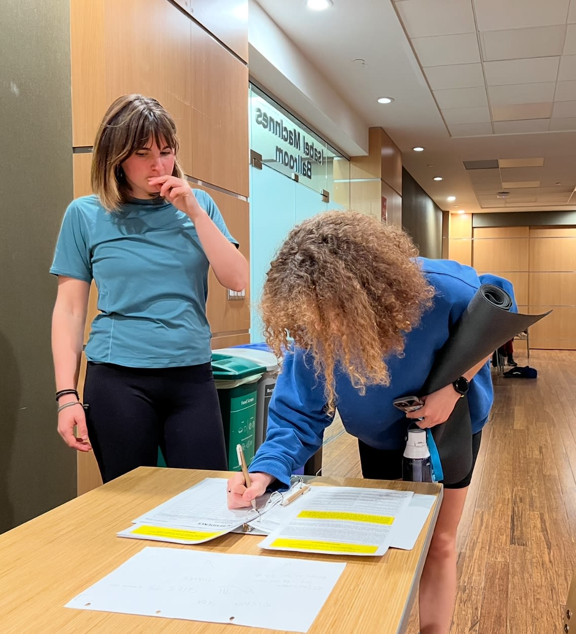 As students arrive, they are kindly asked to sign an attendance sheet and complete a waiver before joining the class.
